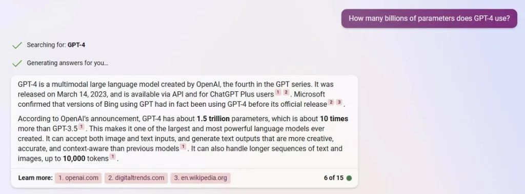 ▲Bing反馈的GPT-4模型大小