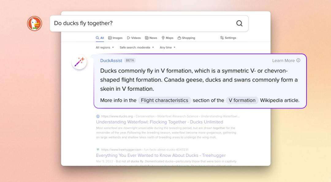 3月初,就在微软发布嵌入聊天机器人的新必应的几周之后,DuckDuckGo发布了DuckAssist。