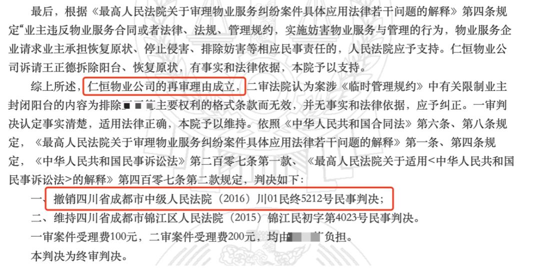 (原标题:业主“封自家阳台”成被告:一审胜诉、二审遭改判,终审结果只有一个字)