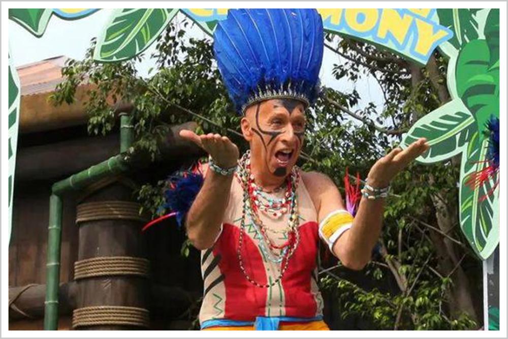 为了推广海洋公园的水母馆,他还会亲自上阵,穿上粉蓝色的连身衣服,扮成一只水母来吸引眼球。
