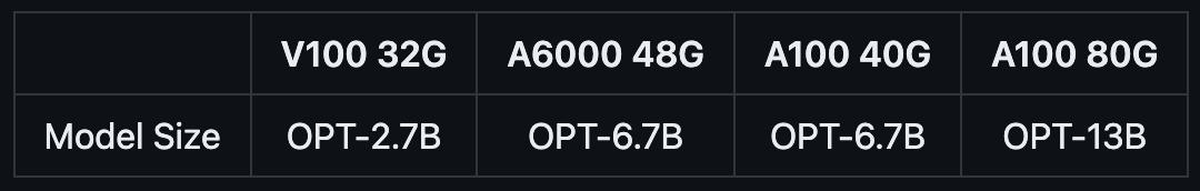 如果你可以使用多节点集群或云资源,并希望训练一个更大、更高质量的模型。那么只需基于下面这行代码,输入你想要的模型大小(如66B)和GPU数量(如64):