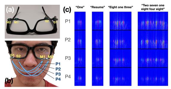 两对微型扬声器和麦克风放在镜框下方来监测面部不同侧面的运动,当扬声器发出约20000赫兹的声波时,声波会沿着一块镜片到嘴唇的特定路径传播到另一块镜片上。当来自扬声器的声波感知到唇部运动后进行反射和衍射时,麦克风会捕捉这些声波的独特模式,并为每个句子或是命令制作一个“回声配置文件”,这就像一个完整的小型声呐系统在镜片下方工作。