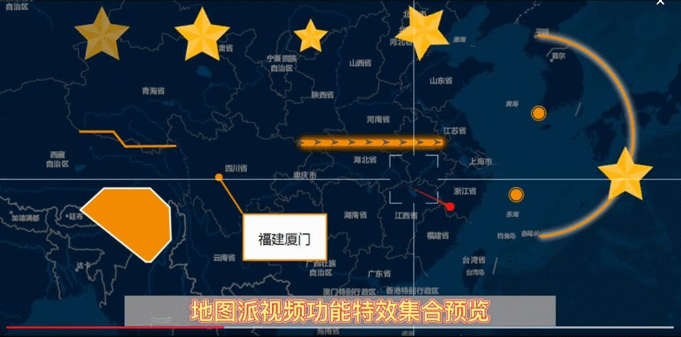 在解决了矢量切片的难题后,江复兴又遇到了新的客户需求——地图动画。当前许多高校和媒体都希望用到地图动画,去解释国际局势、变迁行为等等。经过半年的研发,地图派也成功集成了地图视频和动画功能,支持用户在线自定义生成动画。