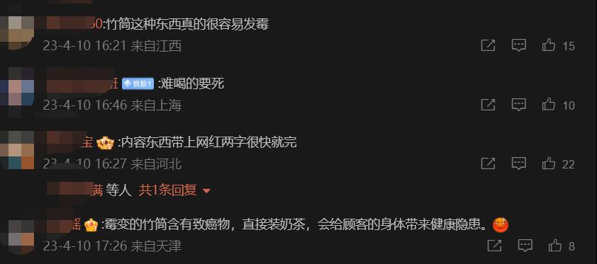 在大量的网友评论中,饮Sir发现,网友中间并不缺乏透过现象看本质的“先知者”,即便是“外行人”,他们也早就认定了竹筒奶茶的“昙花”命运。“霉变”风波,早已在预料之中。