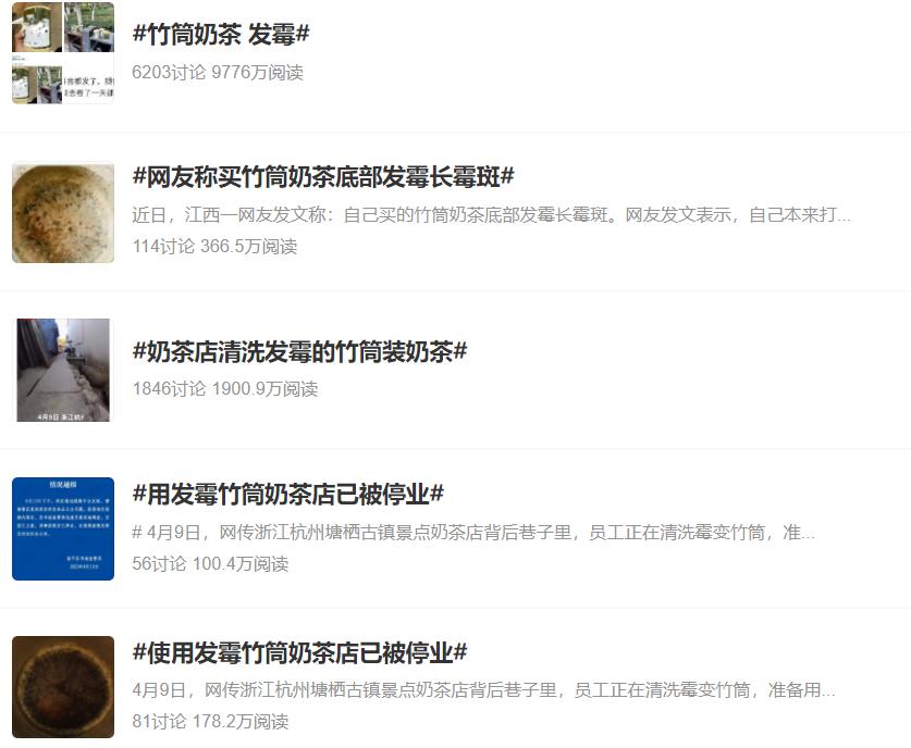 就在日前,今春“大爆款”竹 筒奶茶翻车了,微博上,与之相关的#竹筒奶茶发霉#、 #竹筒奶茶原来是回收筒吗#等话题获得亿级阅读量。