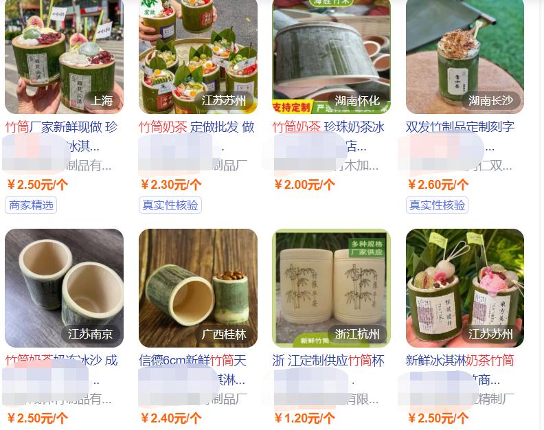 另一方面,竹筒这种“天然、湿润”、“易发霉”的材质,在供应源头就具有一定的安全风险。且目前,市面上的竹筒供货参差不齐。百度搜索“竹筒奶茶”时,首页就有推荐一批竹筒供应商家,可以提供定做批发。打开各大电商平台甚至是社交平台,各类竹筒供应商家的内容更是应接不暇。