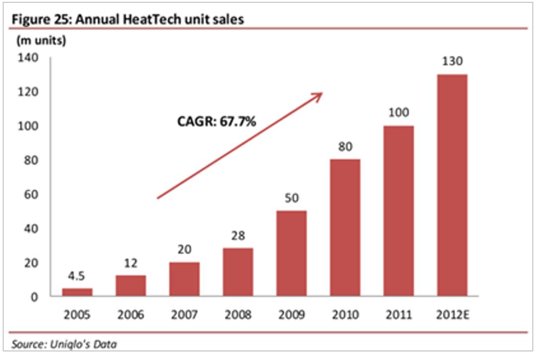 同时,还每年对摇粒绒产品进行革新,比如将它和拳头技术HEATTECH 结合,提升保暖性能、升级防静电等。如此不断创新,产品持续穿越周期,销量一路向上。