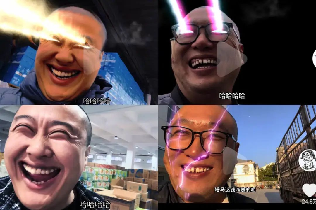 比如也狗会在每次开头标志性大笑后放上“大嘴笑脸”“镭射眼”特效,胖丁则在视频中反复加入“镭射眼”和“雷劈”特效,魔性洗脑又有鲜明的记忆点。
