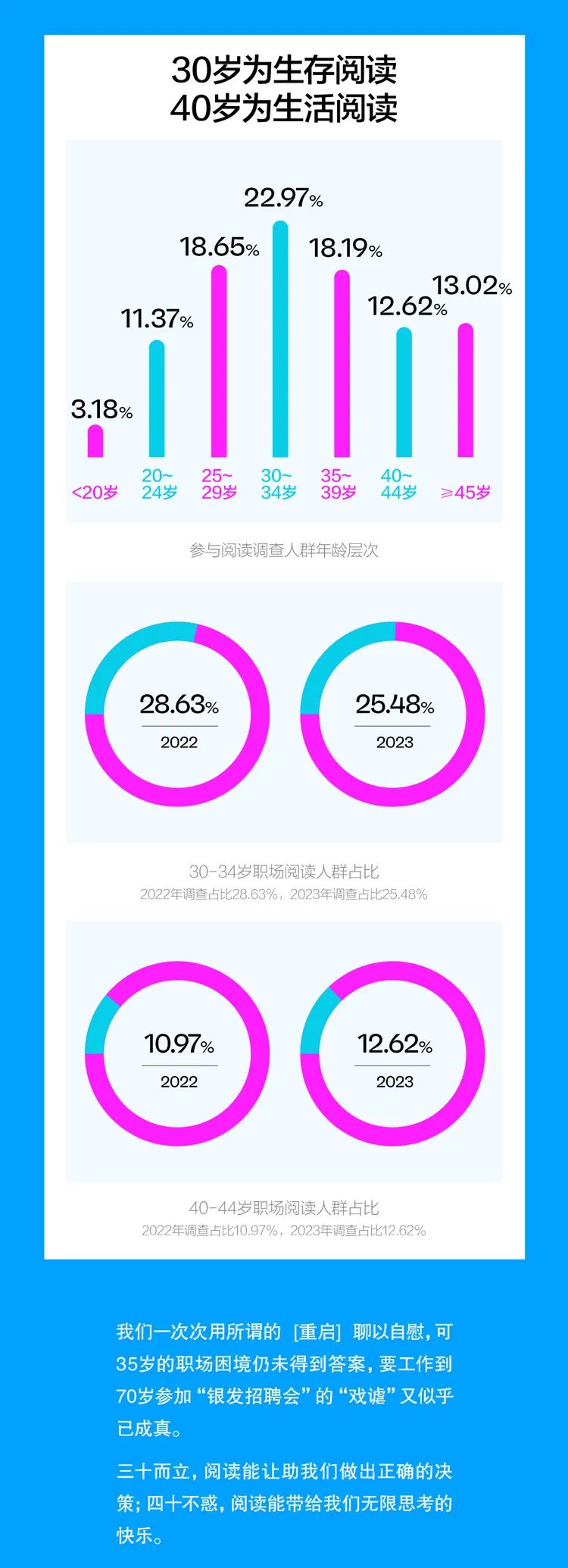 在第28届4.23【世界读书日】到来之际,通过对10000+份调查问卷进行分析,我们特此发布《2023职场人阅读报告》。