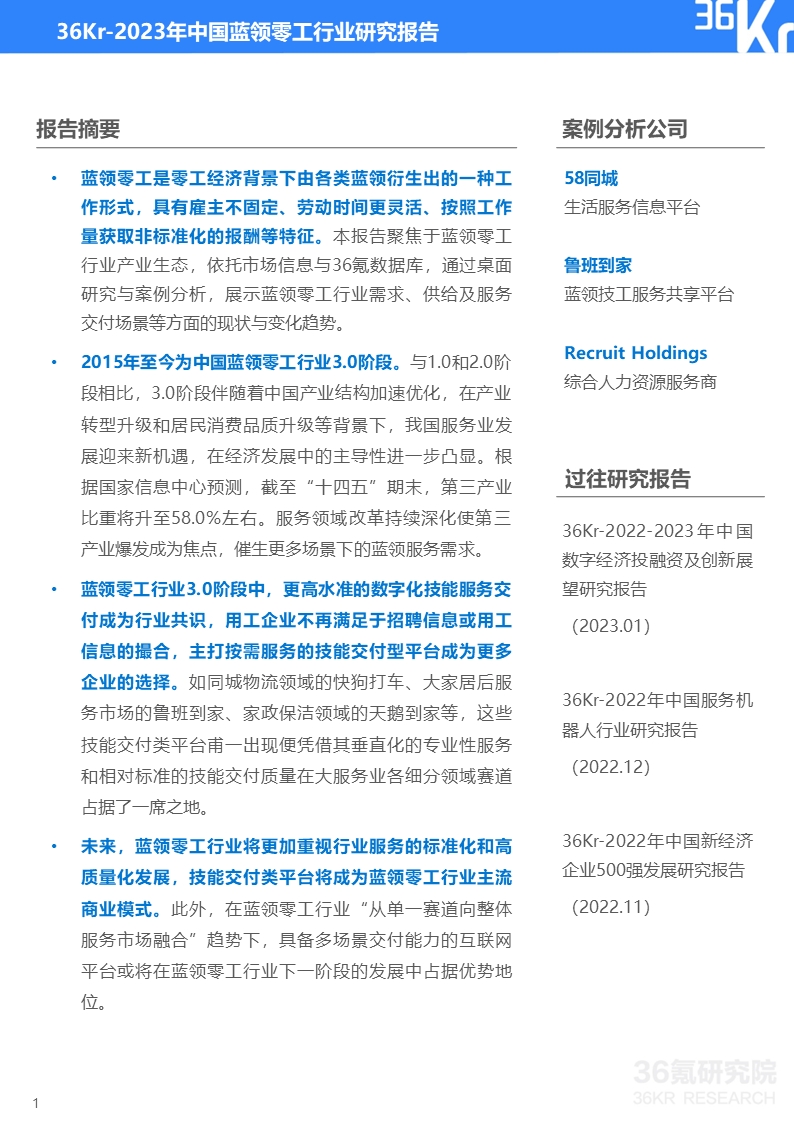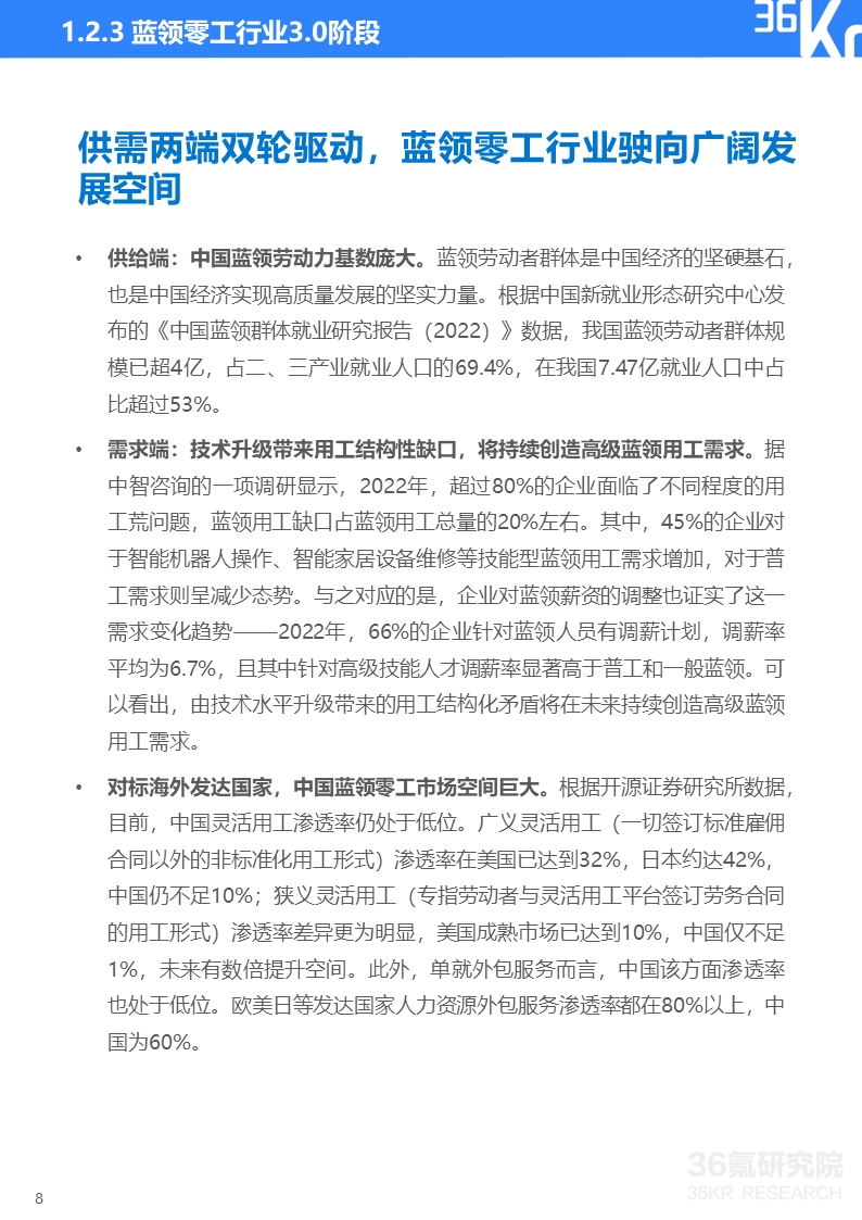 36氪研究院 | 2023年中国蓝领零工行业研究报告