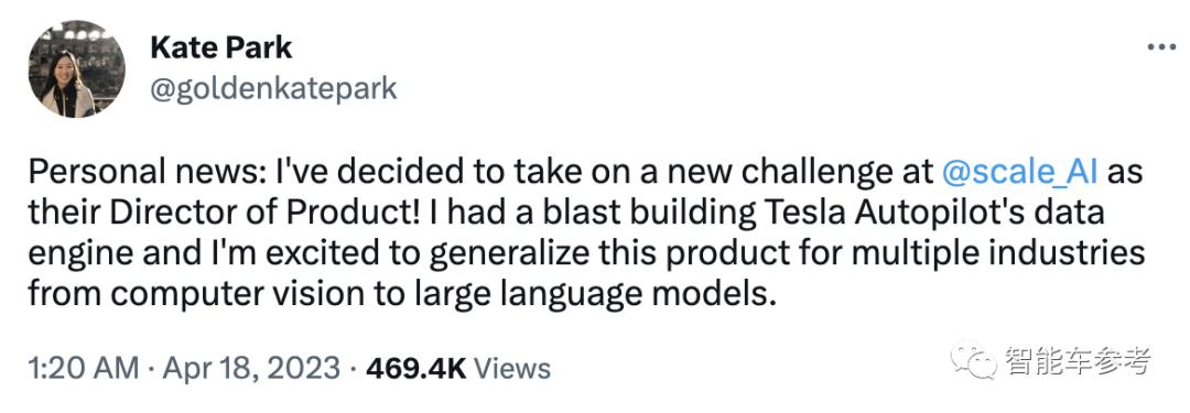 我决定迎接新的挑战,那就是去Scale AI担任产品总监。过去在特斯拉Autopilot数据引擎团队我收获了很多,现在我要将这个产品推广到多个行业里,即从计算机视觉到语言大模型,我真的很兴奋!