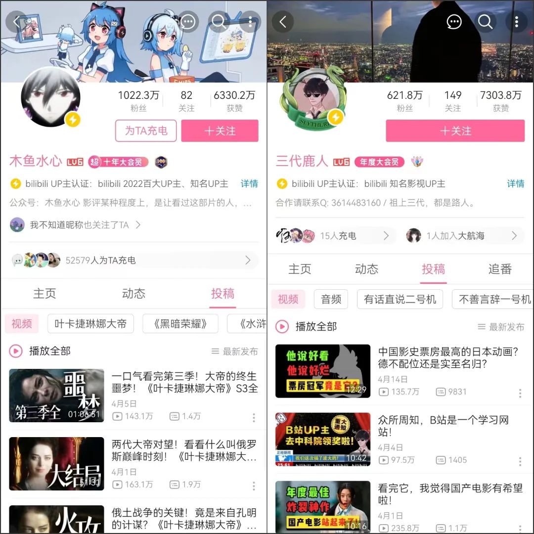 B站UP主@木鱼水心、@三代鹿人