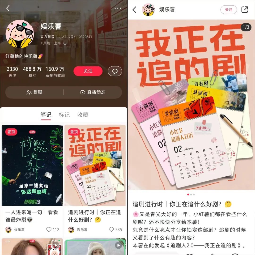今年3月,小红书娱乐官方账号@娱乐薯发布了“2023年追剧人活动”,鼓励用户带话题