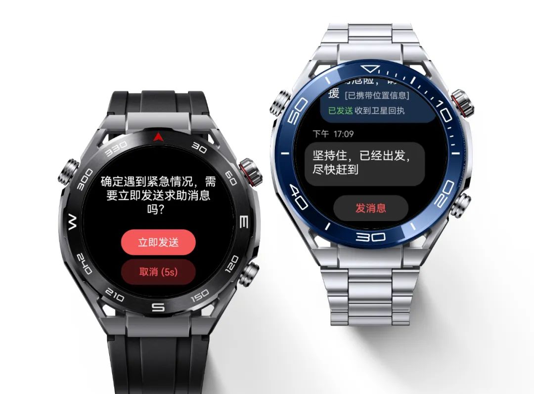以华为WATCH Ultimate 非凡大师为例,作为全球首款支持双向北斗卫星消息的大众智能手表[2],在无地面网络情况下,可独立向其他移动终端发送北斗卫星消息。
