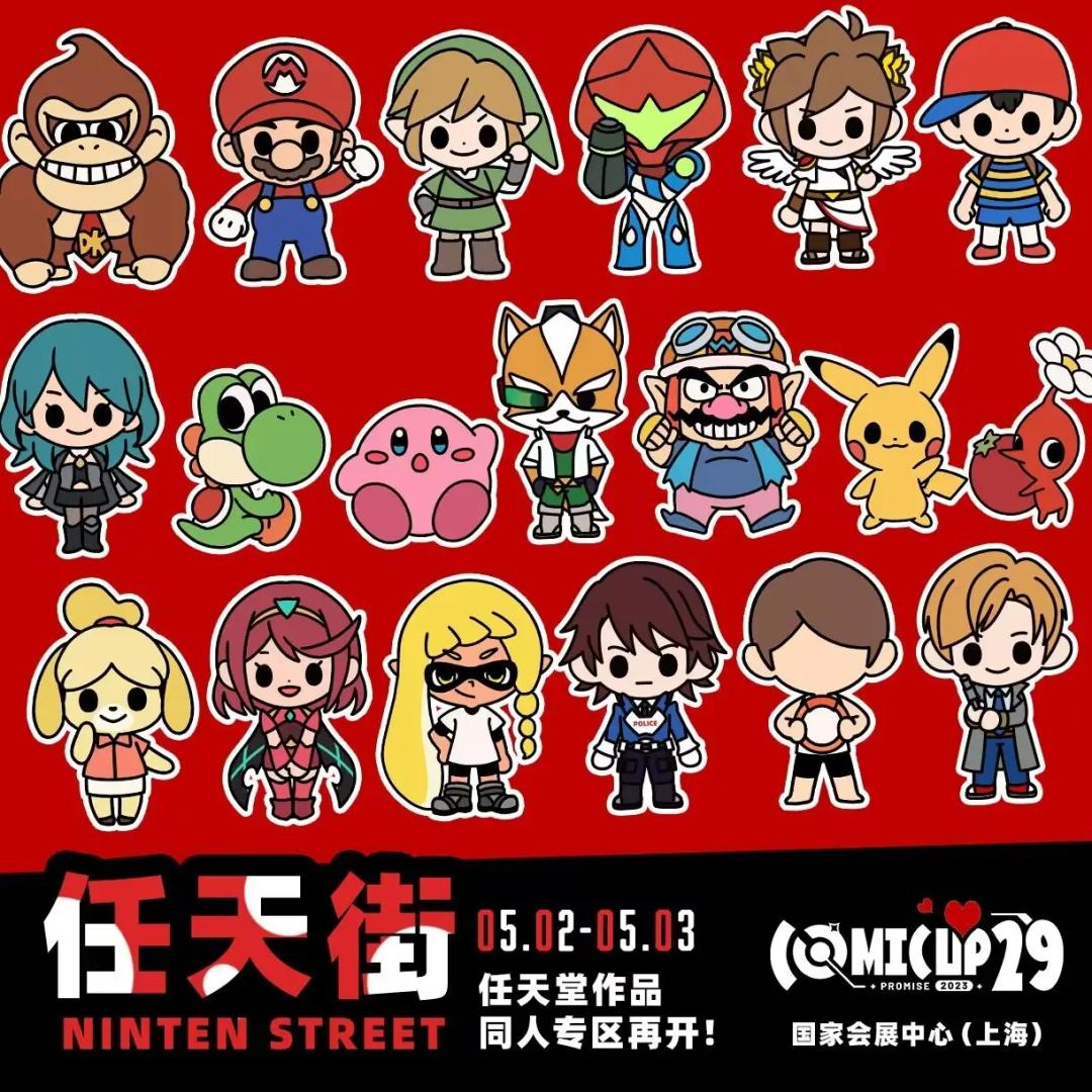 此外,一些海外知名大厂也寻着热度,过来与中国玩家一起“凑热闹”。例如在上海国家会展中心举办的CP29漫展上,任天堂在街委摊“百年老号游戏屋”开办“任天街”。参展用户只需出示任意CP29展IP同人制品,即可参与奖励活动。