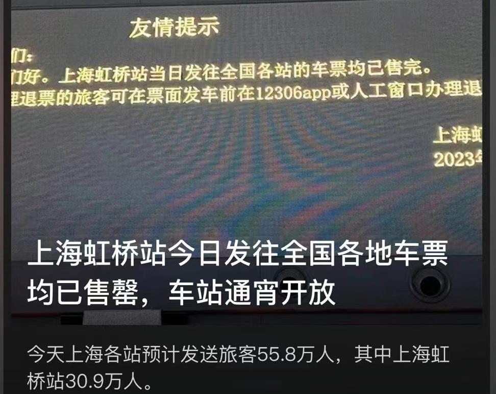对不起,亲爱的旅客朋友们,从上海虹桥发往全国的车票已告罄。
