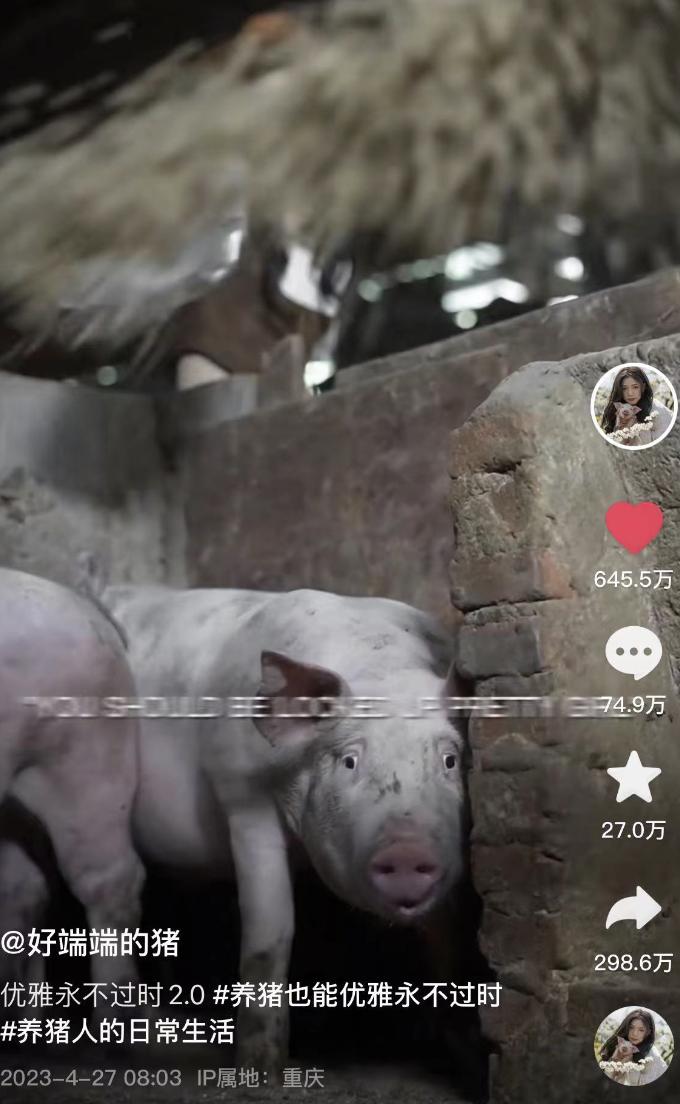 集颜值、反差、变装、剪辑、故事感和养猪流程记录为一体,很难说定位在“三农”的“好端端的猪”到底是什么博主。观众也见仁见智,有人为女孩的颜值倾倒、有人在截猪的表情包并求情说能不能别把它做成红烧肉……也有人和我同事一样,觉得猪场居然可以如此有格调,感叹原来养猪是这么“浪漫”的一件事——