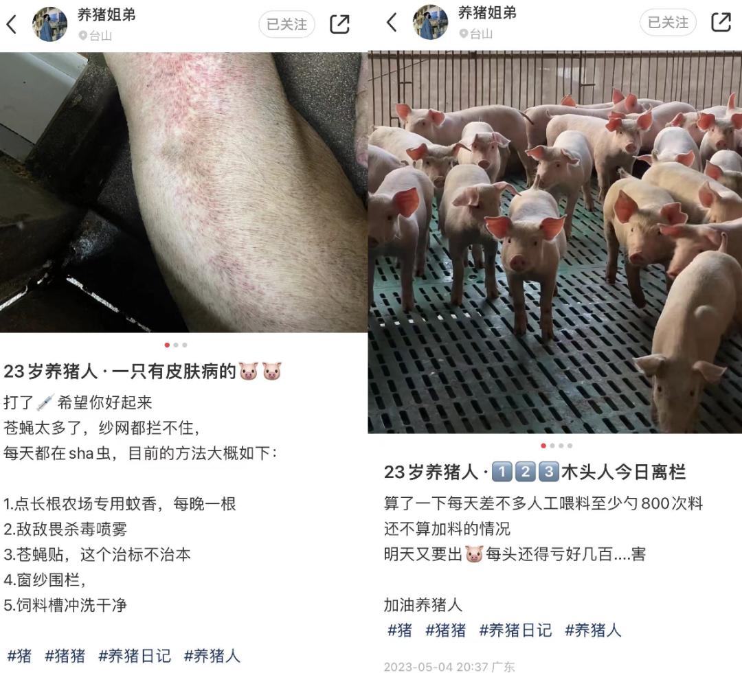 “养猪姐弟”是一对95后姐弟分享养猪日记的小红书账号,近一两月有20-30人私信他们询问养猪起步的事儿,大部分是不想从事和人接触的工作,认为养猪轻松解压,想无经验养猪的。