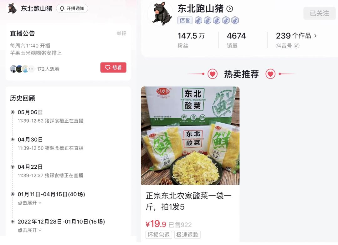 变现方式可量身定制,像东北跑山猪会预告菜谱吸引直播,带的货也是“猪猪伴侣”——酸菜。