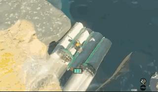 刚进入世界不久,遇到的第一个坎儿是一条河,林克需要用风扇和木头拼成一个木筏过河。先用四根木头拼成一个舒服的大筏子,再随便把风扇往上一杵——诶,这小船就是原地转圈儿,不往前走。