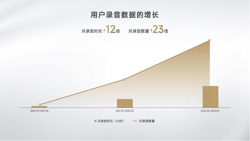 根据马啸的分享,自去年发布耳机产品以来,公司活跃用户总数增长了18倍,产品次月留存率达到74%以上。具体到功能层面,使⽤AI录⾳转写翻译的⽤⼾从每⽉8000⼩时上升到每⽉11万⼩时,近12个⽉增⻓12倍;⽉录⾳数量从1.4万余提升⾄35万余,增⻓了近23倍。