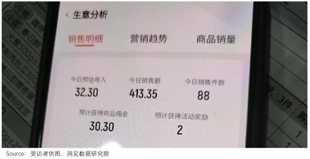 卖得越多越不划算下,李兰选择关闭另外两家平台,只保留淘菜菜。当然,这也只是赚个辛苦钱——一天卖88单,销售额413,预估收入32元,但这已经超过武汉78%的团长的表现。
