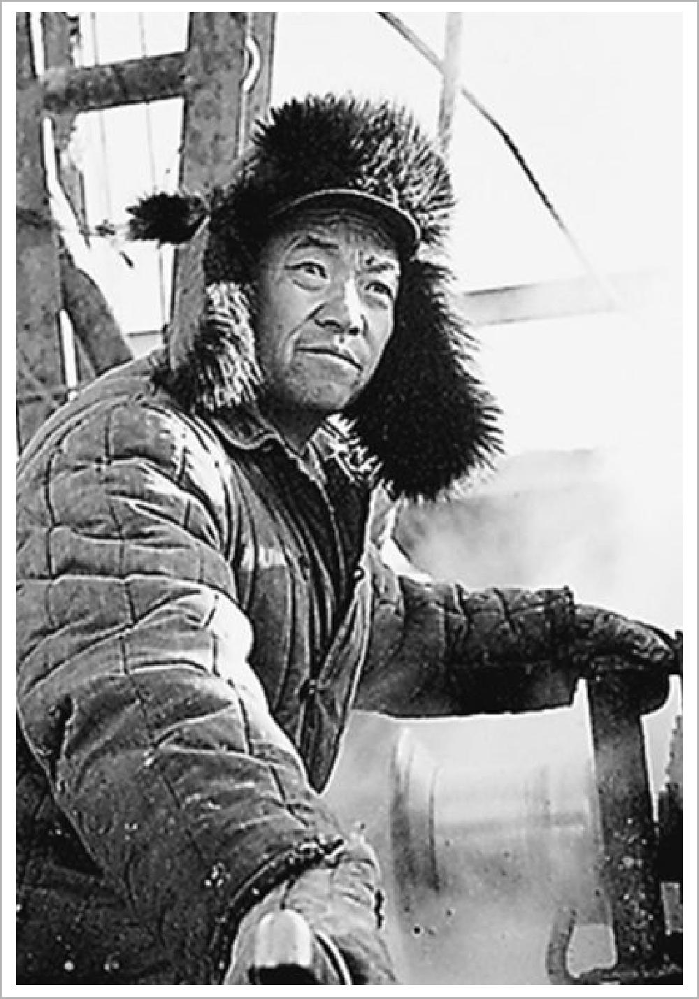 1964年,《中国画报》刊登了一张照片:“铁人”王进喜头戴大狗皮帽、身穿厚棉袄,顶着鹅毛大雪手握钻机刹把,背景则是高大井架。