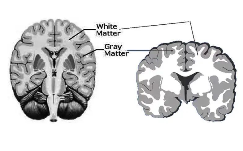 大体上,脑组织由产生和处理信息的灰质以及传递信息的白质组成。你可以将它们看作是大脑内紧密合作的两个部门,一个是埋头干活的灰质,一个是负责对接的白质。