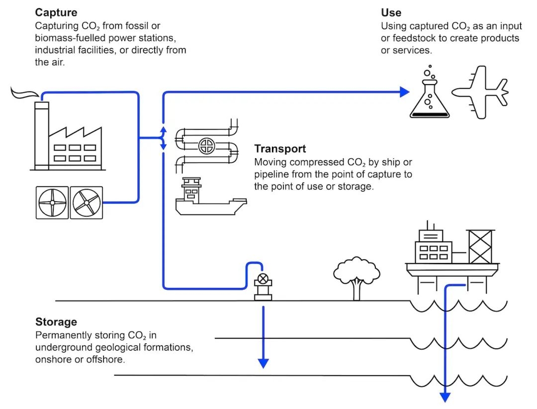 CCUS (Carbon Capture, Utilization and Storage)二氧化碳捕集、利用与封存技术(图源:IEA官网)
