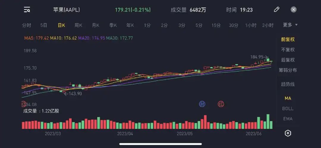 图/苹果美股走势图 来源/老虎证券 燃次元截图