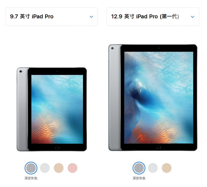 值得注意的是初代 iPad Pro 有两款,一款 9.7 英寸的 iPad Pro ,还有一款为 12.9 英寸。