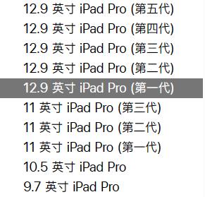 比如 9.7 英寸跟 10.5 英寸它们分别只出过一代,为一个单独的系列分类。