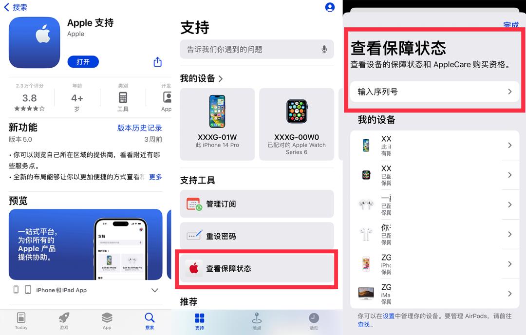 下载完成后在 “ 支持工具 ” 里找到 “ 查看保修状态 ” ,输入序列号后点击完成。