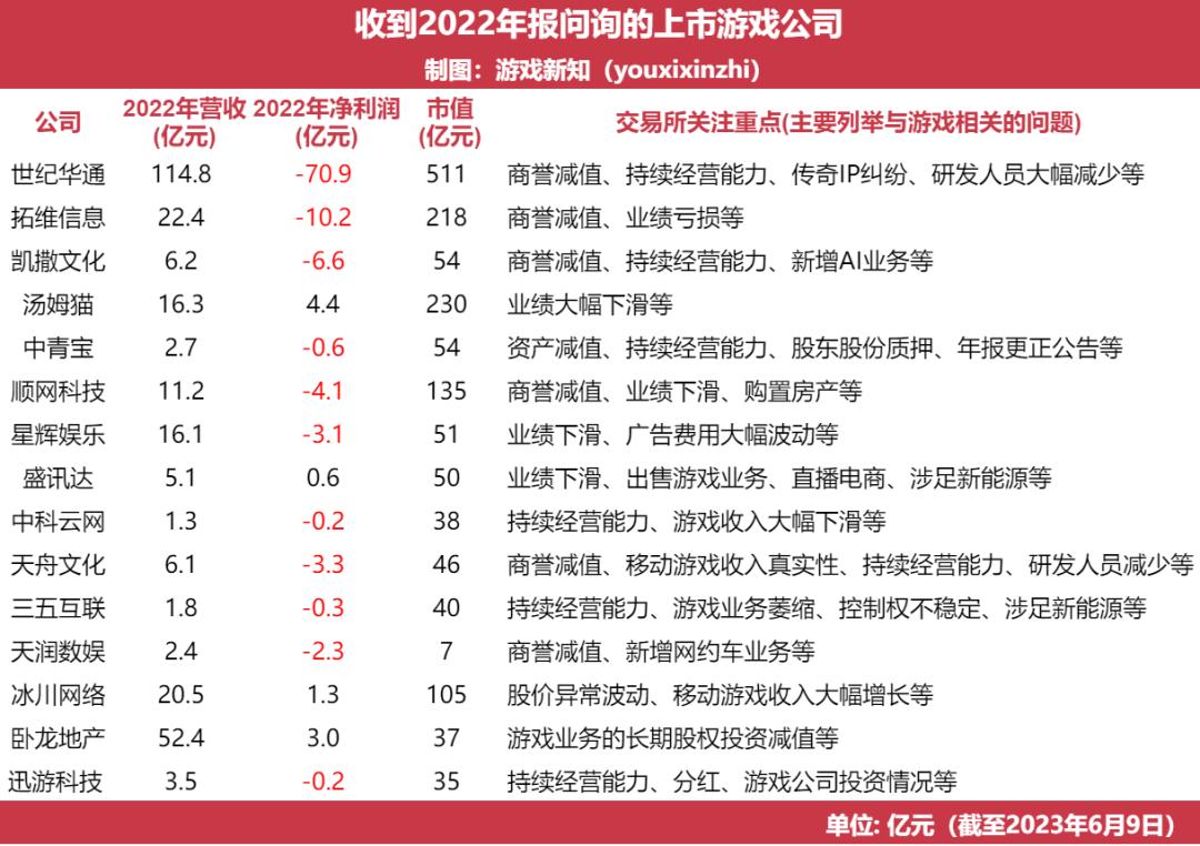 A股上市游戏公司的财报到上个月基本披露完毕,而监管层(交易所)在对上市公司2022年报进行审查后,相关问询仍在继续。