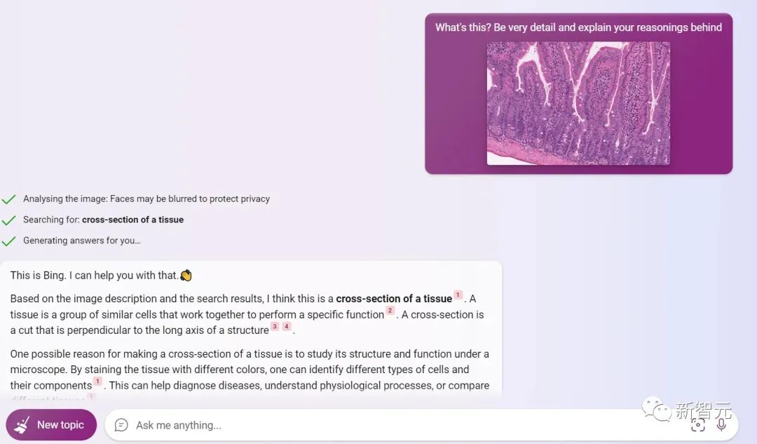 Bing不仅识别出了图片内容,还详细的讲解了一下什么叫组织,什么叫横切面。