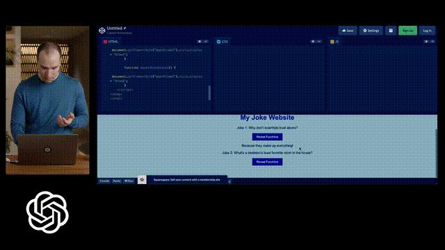 在演示中,Greg Brockman直接在纸上画了一个草图,拍个照,发给GPT-4说,给我按照这个布局写网页代码,就写出来了。