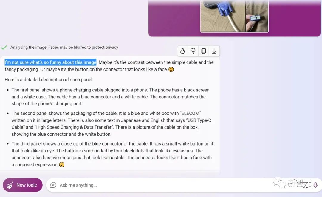 Bing还装模做样的分析了分析,它说也许是接头和包装的反差?也可能是插头的底下看着像一张脸。