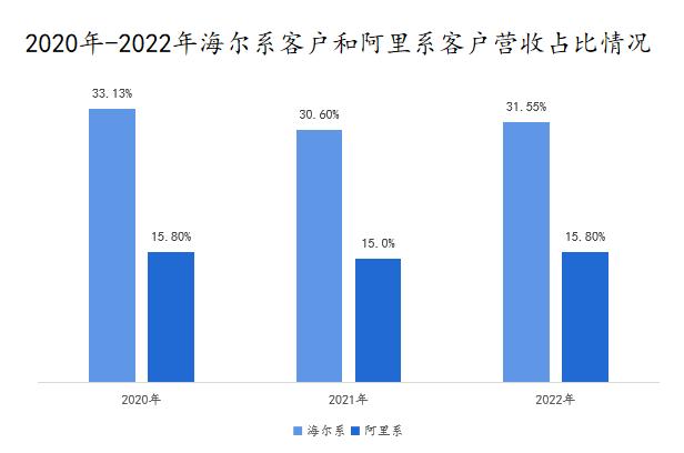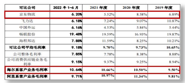 2020年-2022年期间,日日顺来自海尔系客户和阿里系客户的收入一直占到公司总营收的50%左右。同期,由海尔系客户贡献的毛利占比分别为41.48%、41.90%和42.69%。