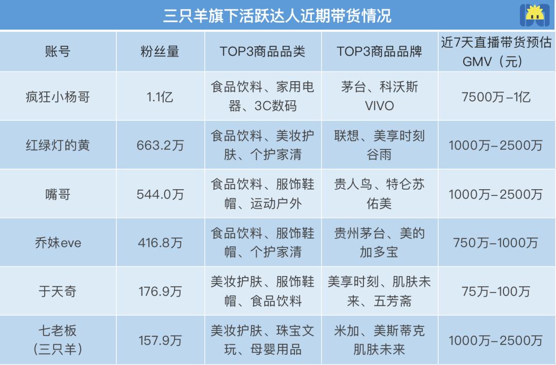 据新抖数据显示,过去一周,三只羊的垂类矩阵直播间累计能贡献2500万元左右的GMV,加上小杨哥的徒弟们,过去一周的总GMV为1.2亿元左右,与小杨哥周六直播当天的累积GMV相近。