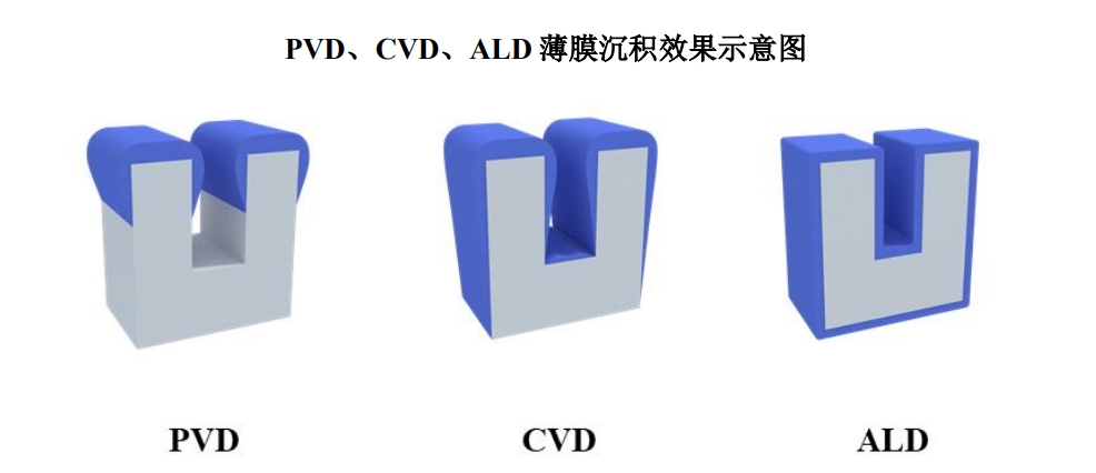 对于具有阶梯结构的表面,例如凹槽、孔隙等,ALD能够在每个层面实现接近100%的均匀覆盖。