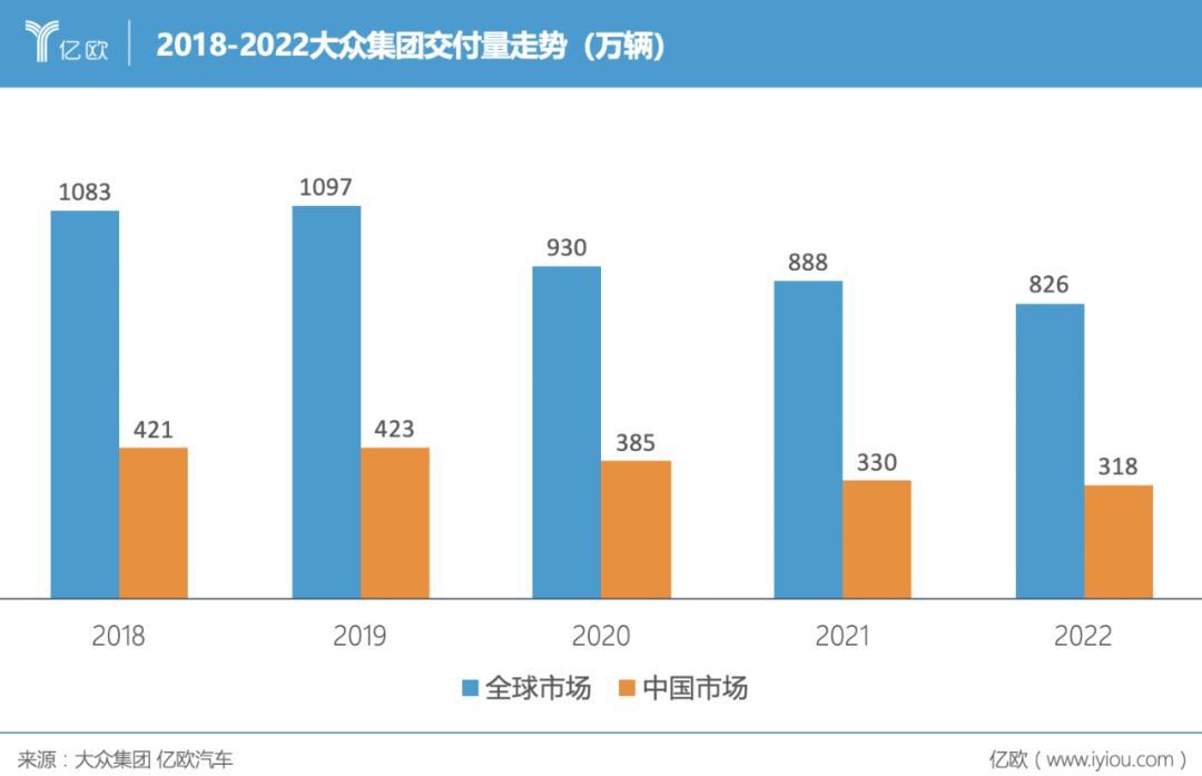 2022年,大众集团全球交付量826万辆新车,中国就占了318万辆,比例接近4成。