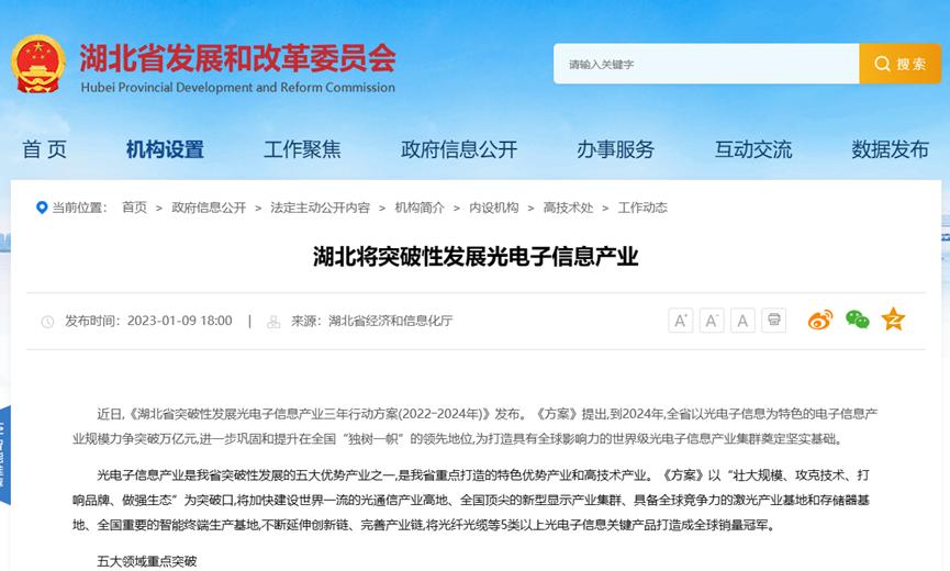 湖北要求优势产业引领集成电路发展。湖北以光电子信息优势产业为突破口,创新引领实现集成电路产业发展。1月,《湖北省突破性发展光电子信息产业三年行动方案(2022―2024年)》发布,其中提出将推进集成电路等领域重点突破,带动软件和信息技术服务业、新一代信息通信等相关领域发展。