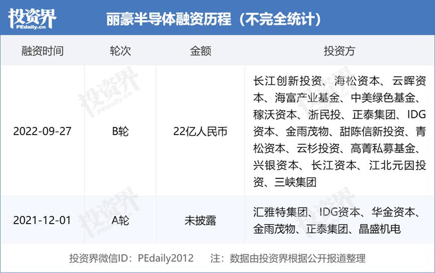 我们先看这家来自青海西宁的独角兽。去年9月,丽豪半导体宣布完成22亿元的B轮融资,投资方阵容豪华:三峡集团旗下长江证券创新投资、海松资本、雲晖资本、中国-比利时直接股权投资基金、中美绿色基金、浙民投等参与投资,IDG资本、正泰、金雨茂物等老股东追加投资。