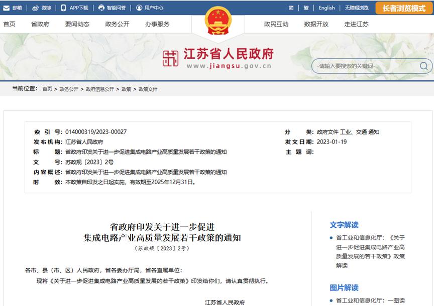 江苏正在积极落实集成电路企业相关税收优惠政策。今年1月,江苏正式印发《关于进一步促进集成电路产业高质量发展的若干政策》,鼓励研发创新、对符合条件的集成电路企业最高给予4000万元资金支持。