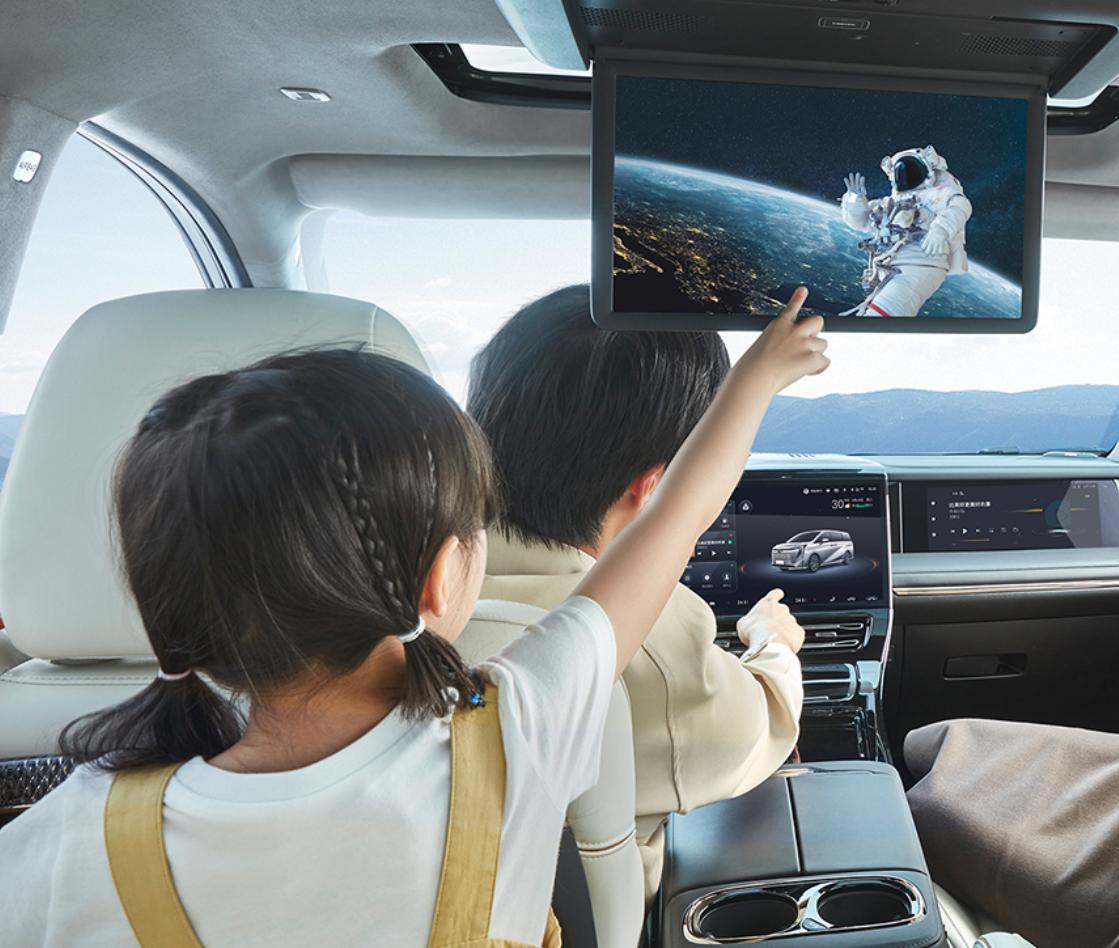 平时不使用时,它一般都会折叠收纳起来,不遮挡乘员的视线。车载电视本身的使用场景并不丰富,也有很多车企打出“线上会议”等之类的用途,估计真正这么用的寥寥无几,你看有几个大老板上车是真的用到电视的?