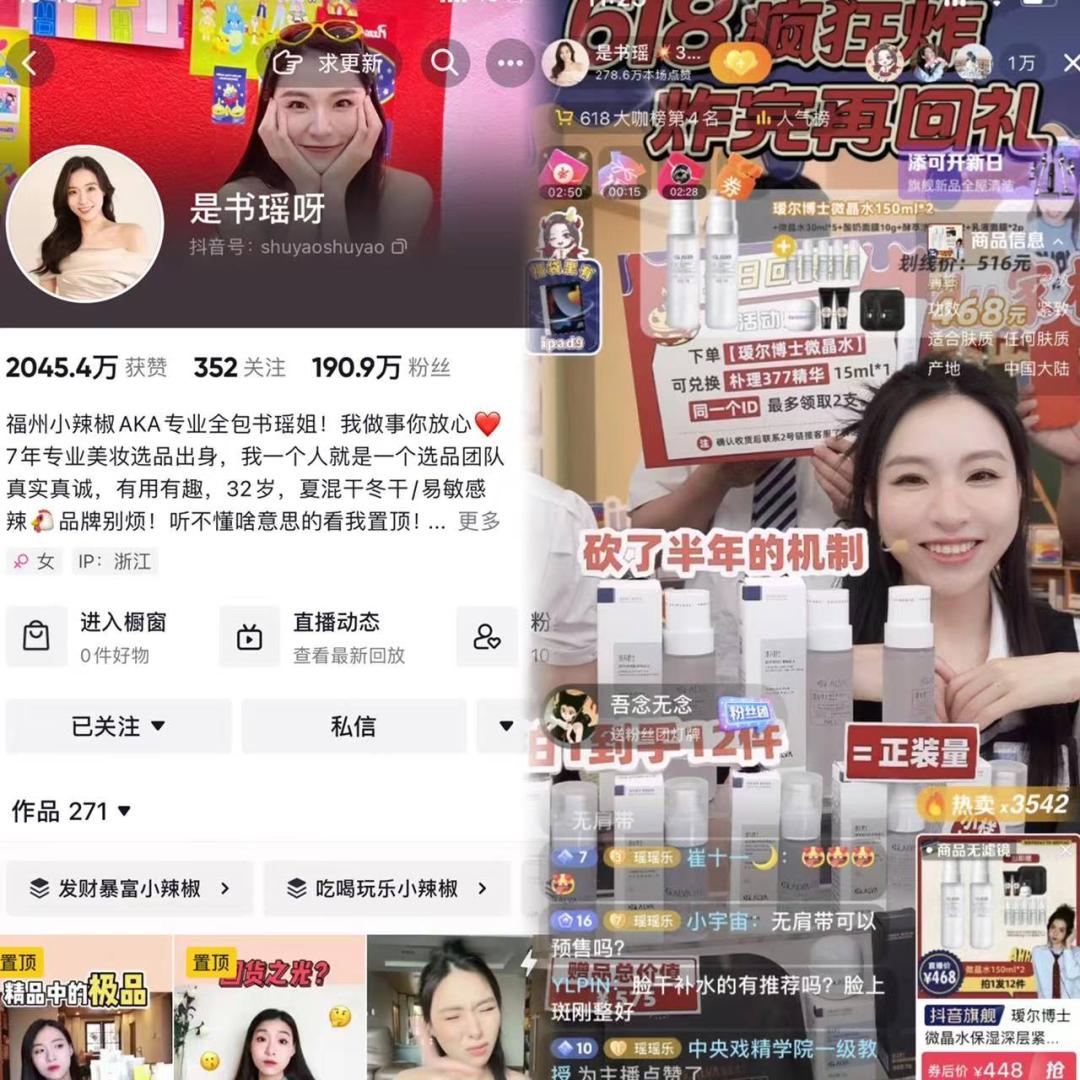 在5月31号书瑶的生日直播中,瑷尔博士微晶水该产品单坑产出破200万销售额。而这并非书瑶第一次带货该品牌的产品。