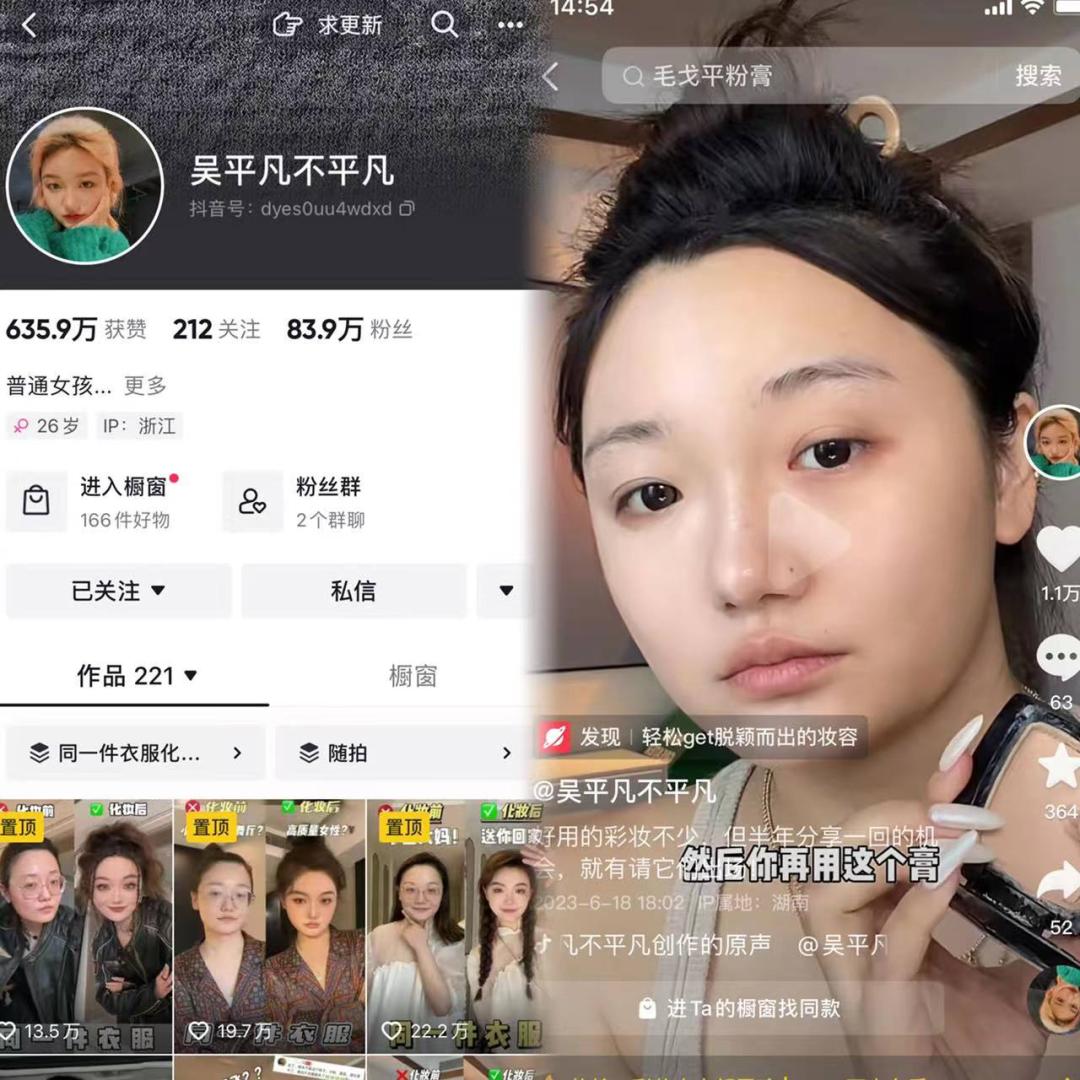如宸帆旗下的另一位美妆博主@吴平凡不平凡(下称吴平凡)以及在抖音以“喊麦+rap”直播形式出圈的@大嘴妹(所属机构:毛豆传媒),在本次618大促都与毛戈平彩妆合作了“美肌无痕粉膏”该产品。