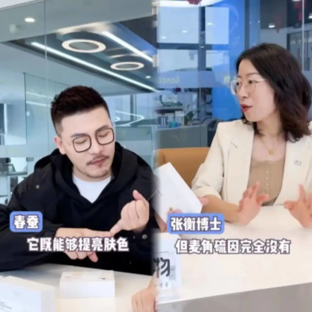 随后在直播场景中,美妆春蚕则通过自由基(DPPH)清除实验方法,从而验证麦角硫因产品抗氧化的功效。