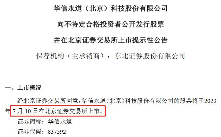 7月6日消息,华信永道(837592)将于7月10日在北交所上市,同日从新三板摘牌。据介绍,公司是一家提供住房公积金及银行业数字化解决方案的供应商和服务运营商,先后参与起草和制定了多项相关行业标准。