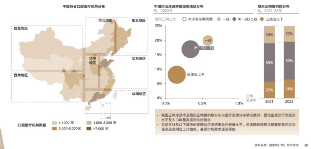 中国隐形正畸行业医疗资源和诊疗分布,图据白皮书